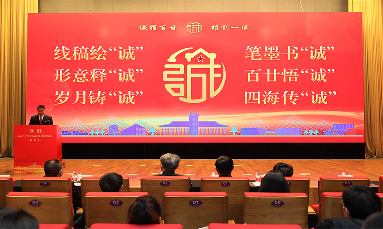 校庆筹备工作领导小组副组长、校党委副书记薛海林介绍了120周年校庆标识创制过程,以及“诚字号”相关线上活动。他指出,在南大的办学历史上,“诚”之血脉一以贯之、历久弥新。“诚”字是对不同时期南大精神的写照和阐释,它凝聚了南大人忠诚于党、挚诚于国的坚守担当,淬炼了南大人竭诚于学、热诚于人的朴质情怀。现场播放了以线稿绘“诚”、形意释“诚”为线索的校庆标识创意宣传片,展现了南京大学岁月铸“诚”的气魄和底蕴,预告了以笔墨书“诚”、百廿悟“诚”、四海传“诚”为线索的“诚字号”线上活动,全面呈现了南京大学校庆期间围绕“诚”字内涵设计的各类文化体验活动。